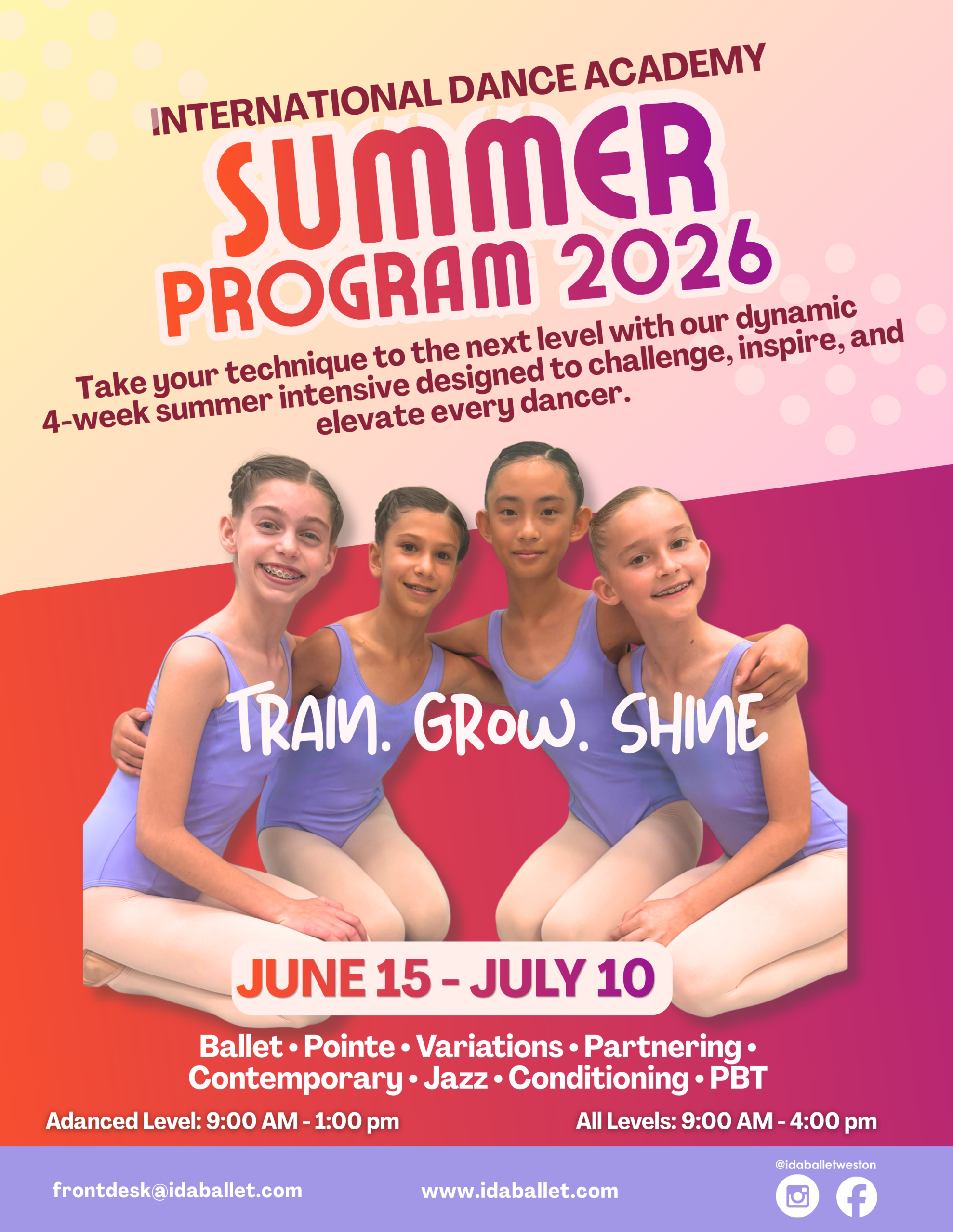International Dance Academy (IDA) offers the Royal Academy of Dance education and training program in a safe and family-friendly environment. Each season includes two exceptional theatrical productions annually, including the all-time favorite, the Nutcracker.